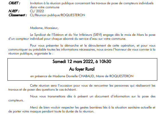 REUNION PUBLIQUE FOYER RURAL SAMEDI 12/03 A 10H