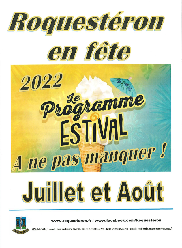 ROQUESTERON PROGRAMME DES FESTIVITES ESTIVALES 2022